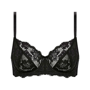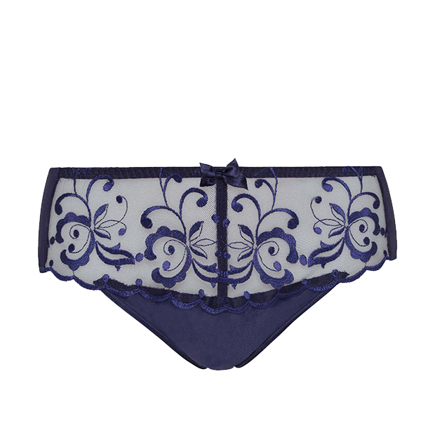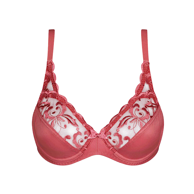 Il reggiseno con ferretto taglio a 2 in morbida microfibra con raffinato inserto in tulle ricamato. In abbinamento uno slip altrettanto.