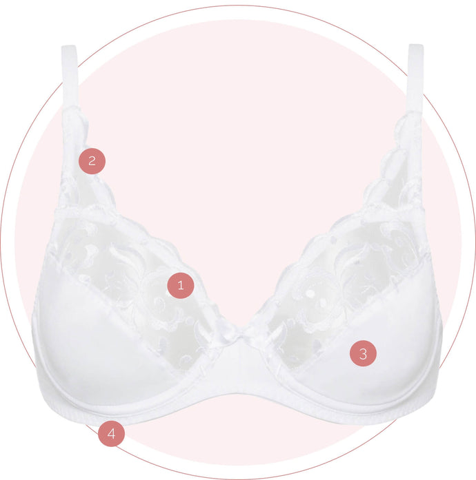 I reggiseni sono composti da coppe preformate in microfibra, elegante ricamo sulla parte alta della coppa e spalline larghe.