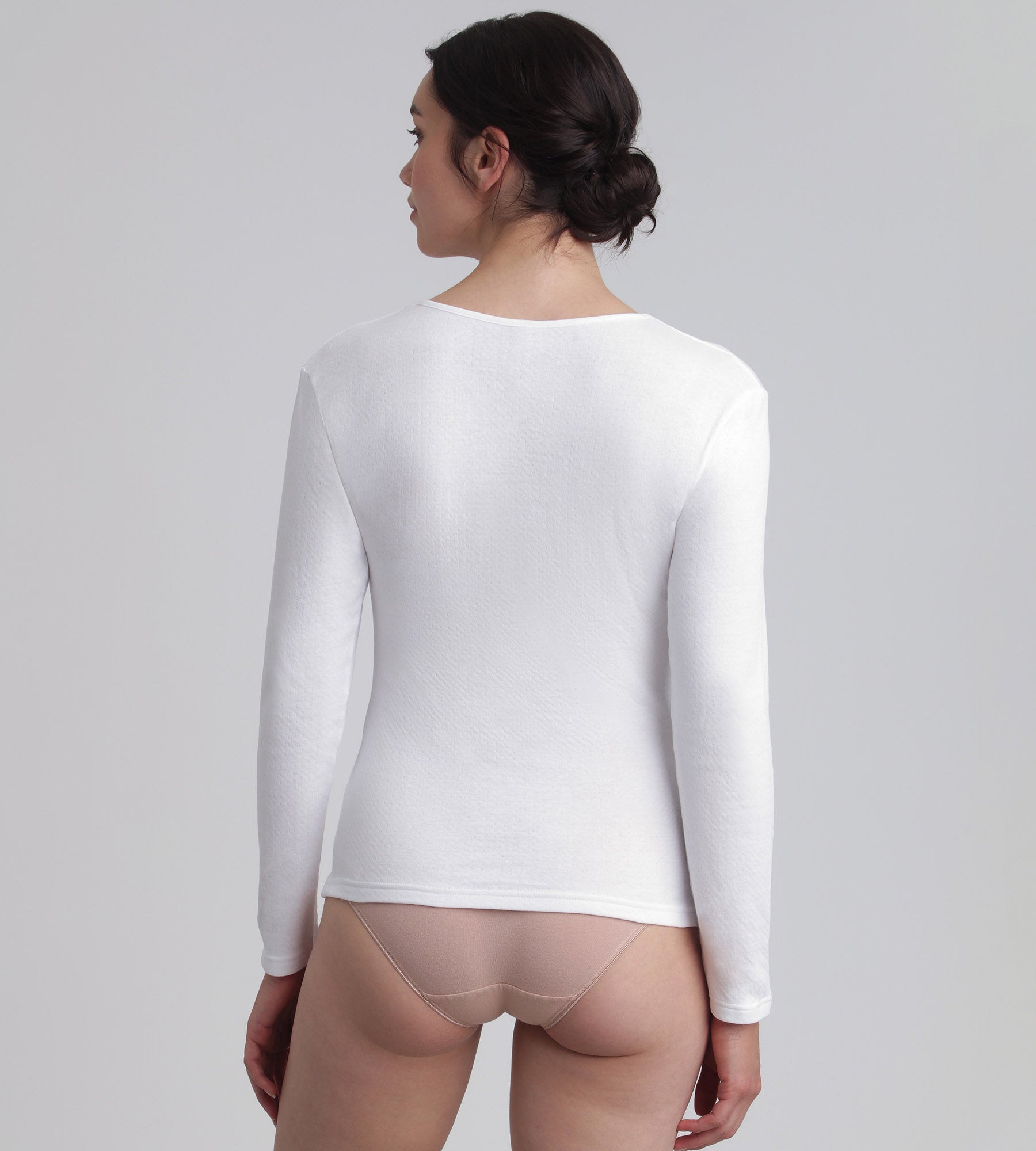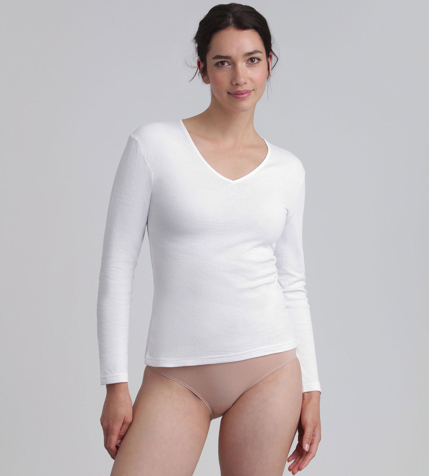Scopri il nostro t-shirt a maniche lunghe bianco con collo a V della collezione Thermal Natural. Il comfort ottimale è garantito dal tessuto in cotone al 100% ultra elasticizzato, morbido e gradevole al tatto. Questa maglietta in fibre naturali a maniche lunghe offre un effetto caldo naturale grazie alla sua fibra termica. Il design classico e intramontabile fa di questo indumento un indispensabile per un uso quotidiano. Molto versatile, indossa la maglietta sotto i tuoi vestiti o come t-shirt base con un jeans.