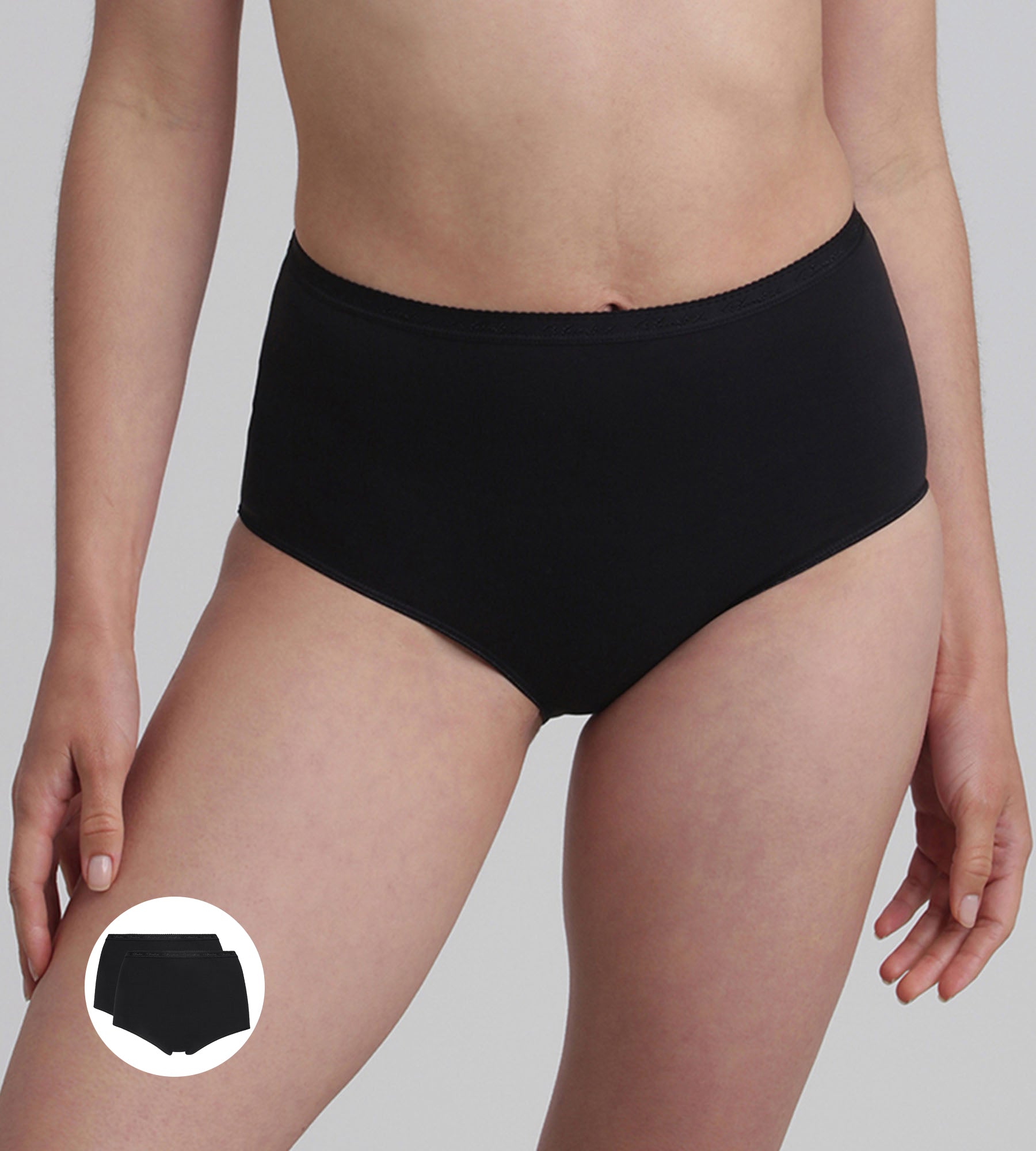 Innamorati di questo paio di mutandine a vita alta in cotone biologico. La morbidezza e la delicatezza del cotone ti offriranno tutto il comfort necessario quotidianamente. Inoltre, il colore nero elegante e intramontabile li rende un capo essenziale del tuo cassetto della biancheria intima.