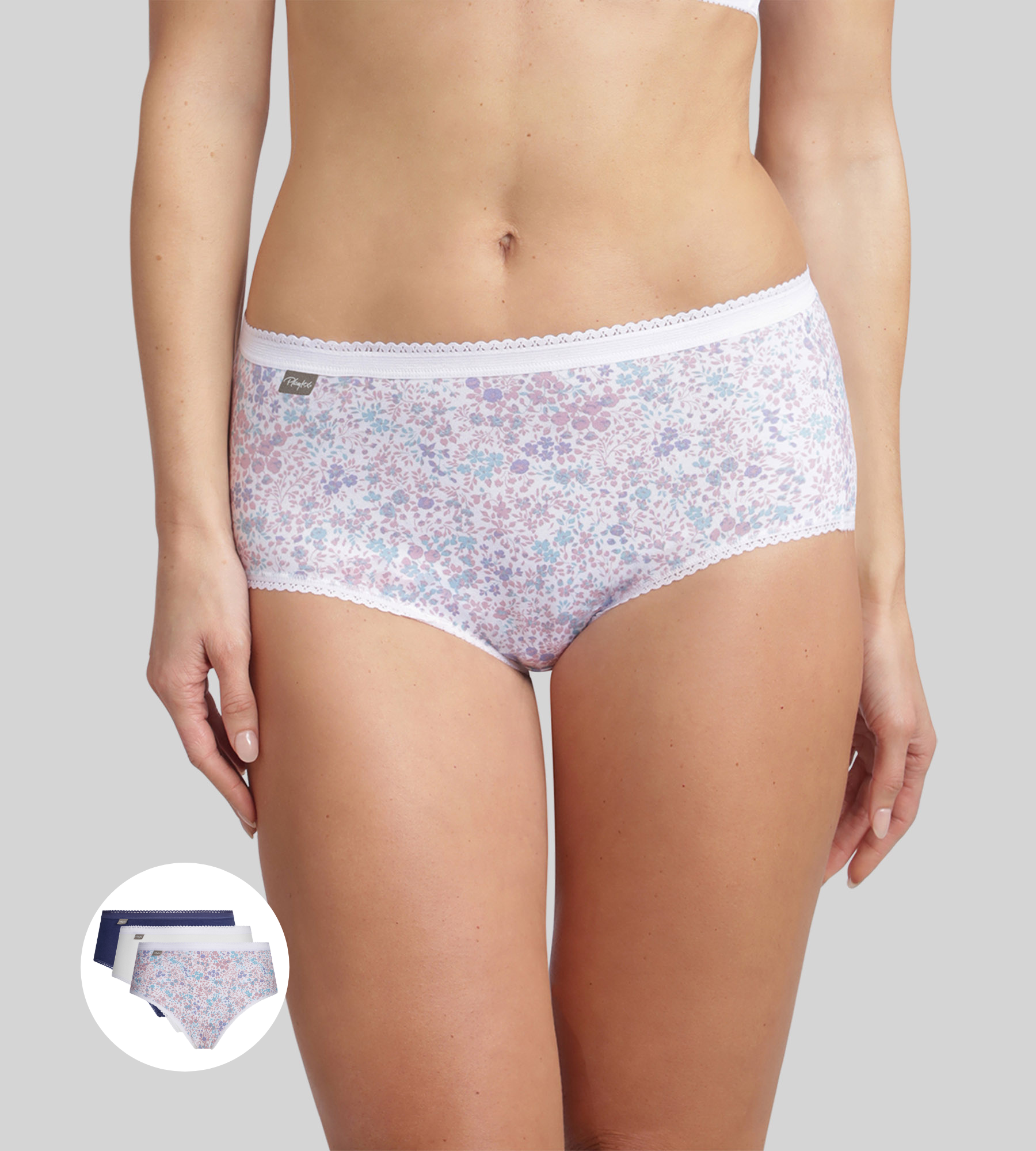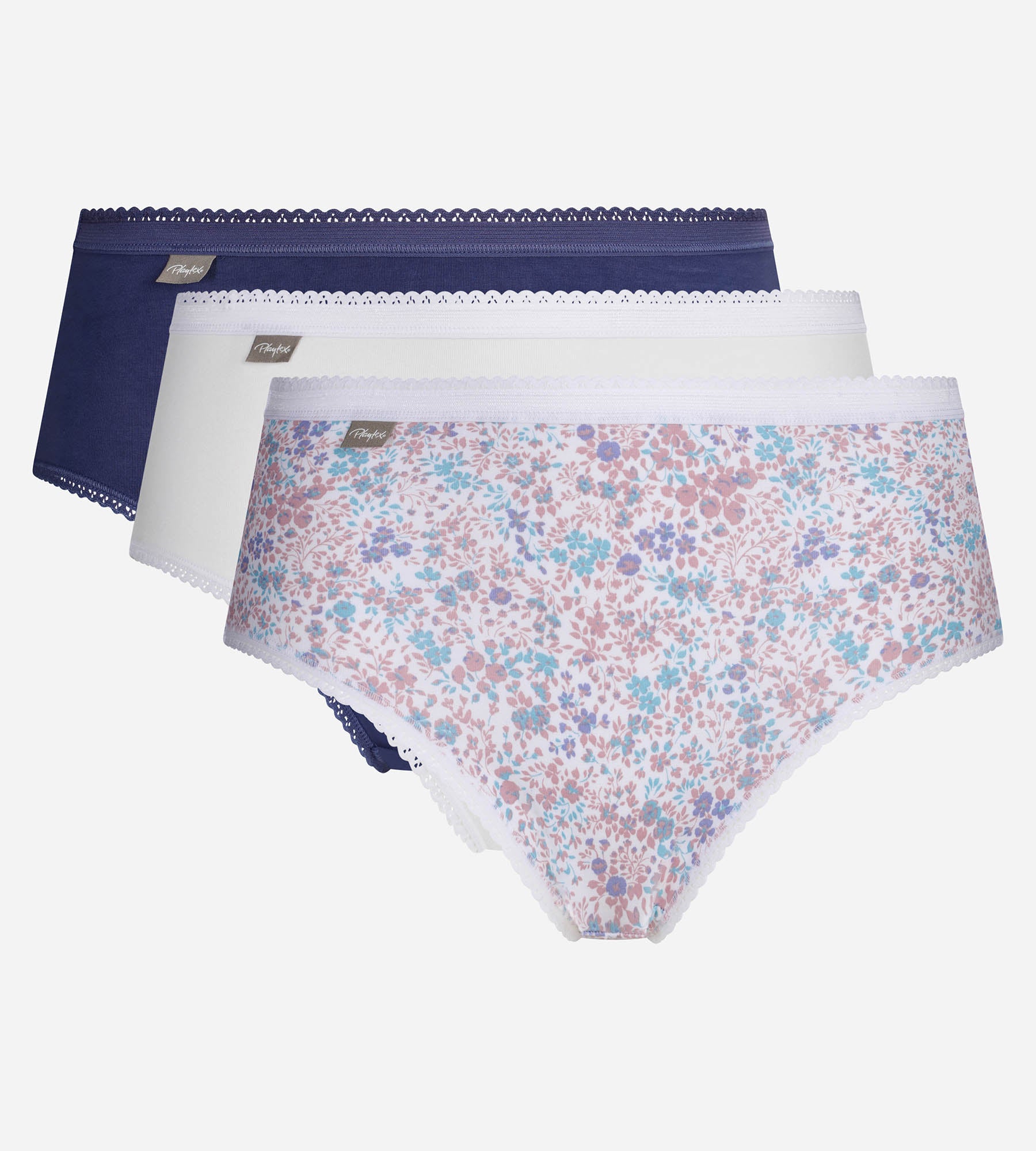 Questo set di slip Playtex® in cotone elasticizzato si distingue per il suo comfort e la sua morbidezza eccezionali. Ogni modello, blu, bianco o a fiori, dona un tocco delicato e femminile alla tua lingerie, pur rimanendo facile da abbinare. Il loro taglio accuratamente studiato si adatta alle forme per una silhouette naturale e una sensazione di benessere per tutto il giorno. Il bordo discreto in vita aggiunge un piccolo dettaglio raffinato che rende questi slip unici.