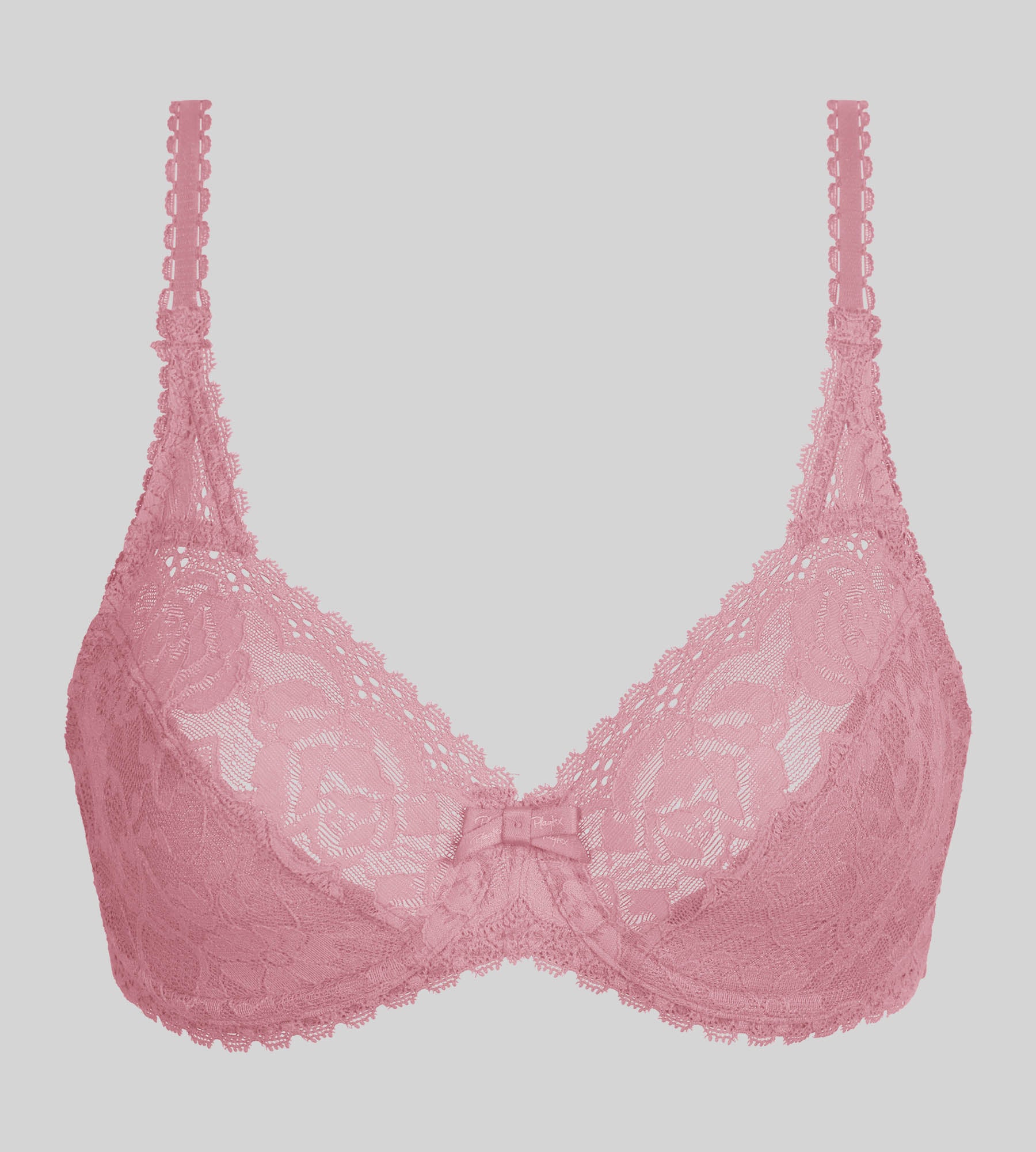 Il reggiseno con ferretto della collezione Flowery Lace Riciclato coniuga eleganza, comfort e sostenibilità. La sua forma avvolgente avvolge perfettamente il seno per una silhouette naturale. Le spalline larghe, il ferretto e la schiena a U assicurano un sostegno duraturo e un comfort ottimale in ogni circostanza. Il colore rosa, il pizzo floreale e il piccolo fiocco in raso sul centrotorace aggiungono raffinatezza e femminilità. Realizzato con materiali riciclati, soddisfa le aspettative delle donne attente all'ambiente, garantendo al contempo un look elegante e sofisticato.