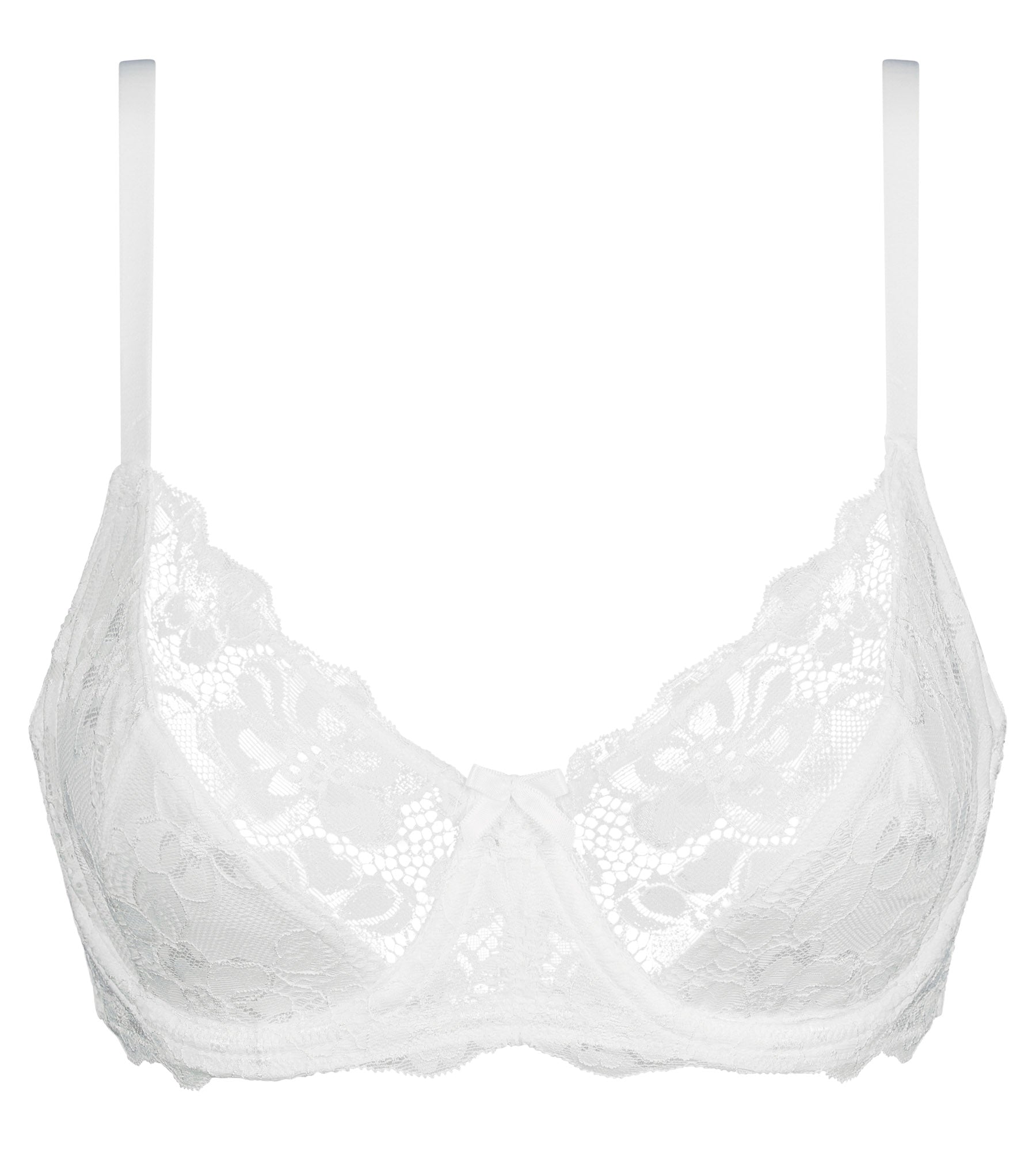 Questo reggiseno in pizzo bianco diventerà un indumento chiave del tuo guardaroba. Per un completino di lingerie ultra-femminile abbinalo alle mini mutandine bianche della stessa collezione.