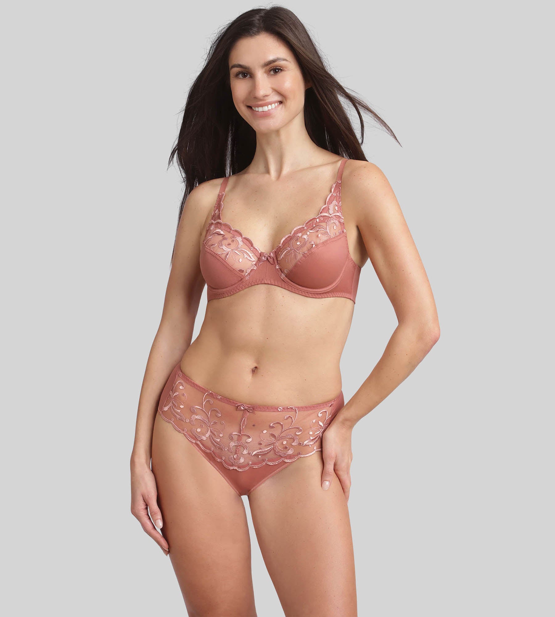 Per un completo perfettamente coordinato, indossalo con gli slip coordinati color cannella Essential Elegance Embroidery e rivela tutta la tua femminilità con stile e comfort.
