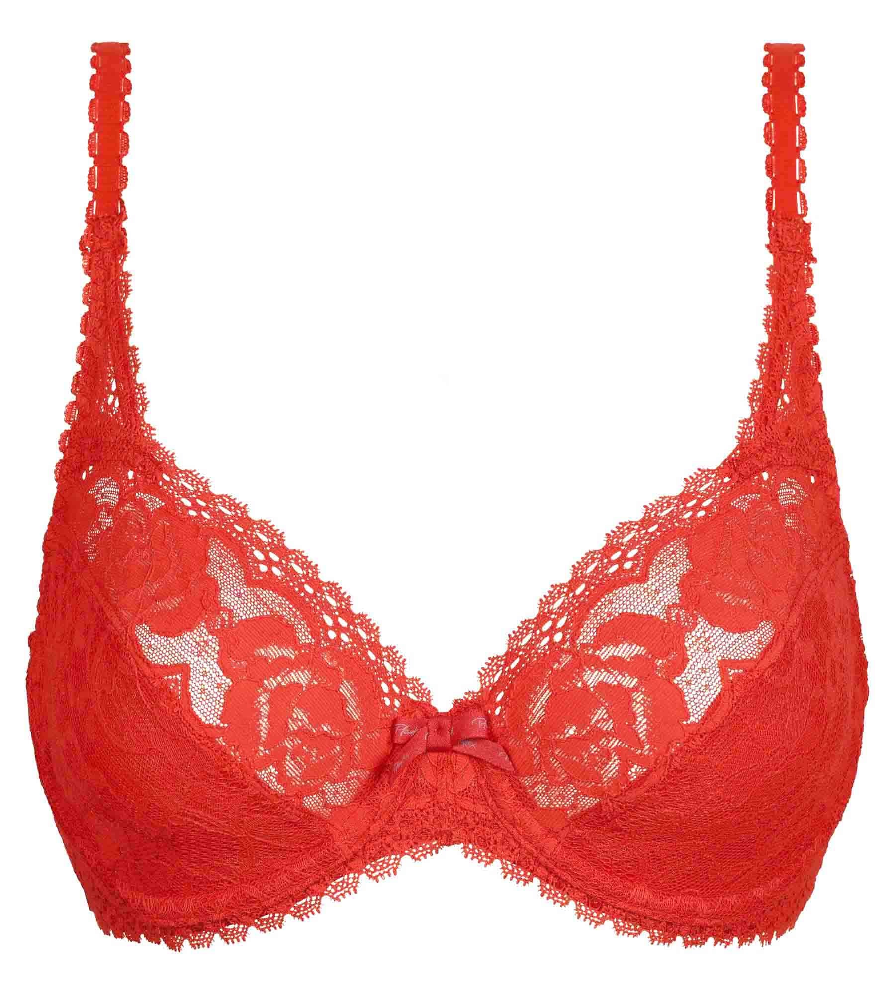 Il reggiseno con ferretto color rosso cremisi della nuova collezione Flowery Lace Riciclato è un capo romantico e femminile che saprà conquistare le donne in cerca di lingerie raffinata. Il suo colore e il delicato pizzo gli conferiscono un aspetto dolce ed elegante. Le coppe inferiori sono foderate e presentano un triangolo di pizzo tra le spalline anteriori e le coppe, garantendo un sostegno ottimale. Questo reggiseno, realizzato con materiali riciclati al 60%, assicura un sostegno ottimale del seno durante tutta la giornata e s'inscrive in un approccio rispettoso del medio ambiente. Inoltre, il fiocco sul centro seno aggiunge un dettaglio elegante e distintivo.