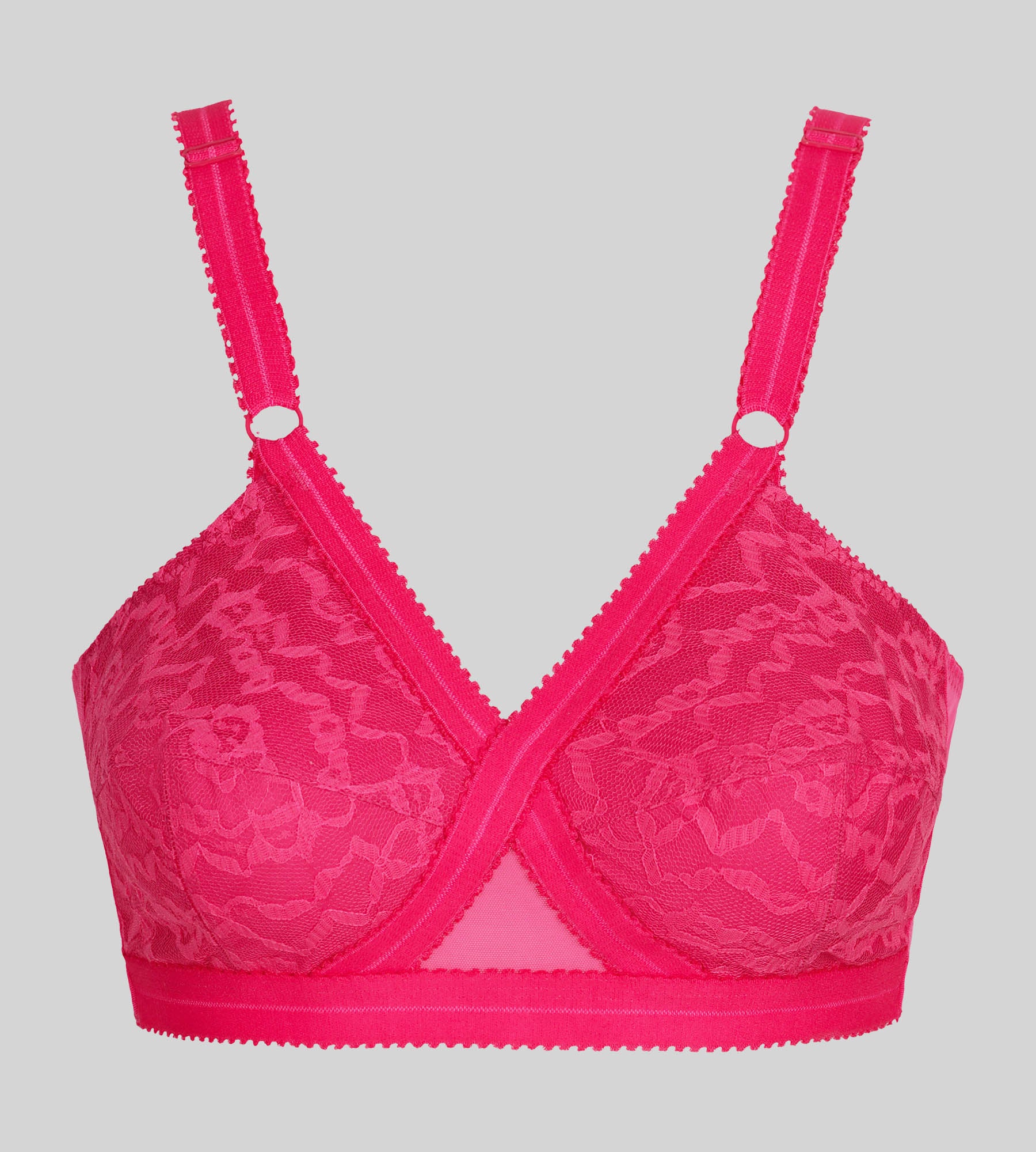 Icona di sostegno e comfort, il reggiseno Criss Cross 556 si reinventa in un nuovo colore lampone, vivace e femminile. Questo modello senza ferretto unisce morbidezza, eleganza e sostegno grazie alla sua iconica struttura a croce, che separa naturalmente il seno e assicura un sostegno perfetto per tutto il giorno. Le coppe avvolgenti in pizzo sono foderate in cotone rigido, per una forma armoniosa e un sostegno impeccabile. Le spalline larghe, regolabili sul davanti, e gli elastici interni ed esterni sono stati appositamente studiati per adattarsi a tutte le morfologie. Questo modello è stato progettato per offrire una forma naturale adatta a tutti i tipi di seno, combinando il comfort di un sostegno quotidiano con la femminilità di un elegante pizzo.