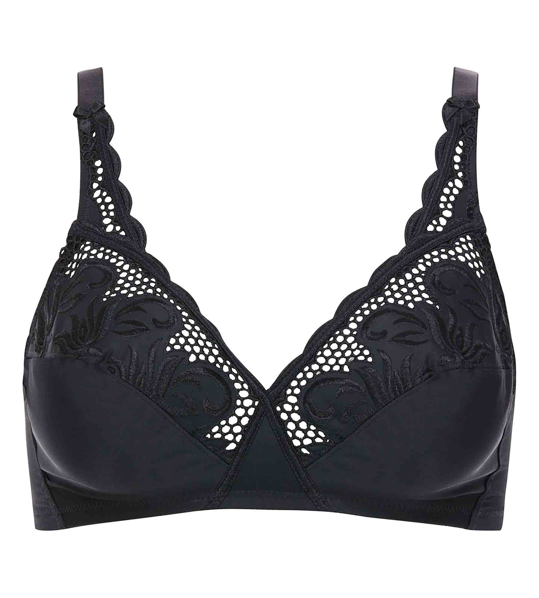 Il reggiseno nero senza ferretto della collezione Criss Cross Modern Tricot offre un sostegno ottimale. La costruzione a X di questa lingerie assicura un seno perfettamente sostenuto e confortevole grazie alle bretelle larghe alle coppe modellanti, oltre che alla particolare struttura della schiena. Apprezzerai questo intimo femminile in microfibra per i suoi inserti di ricamo con effetto satinato lungo la scollatura, sulla parte superiore delle coppe, che apportano femminilità e raffinatezza a questo intimo.