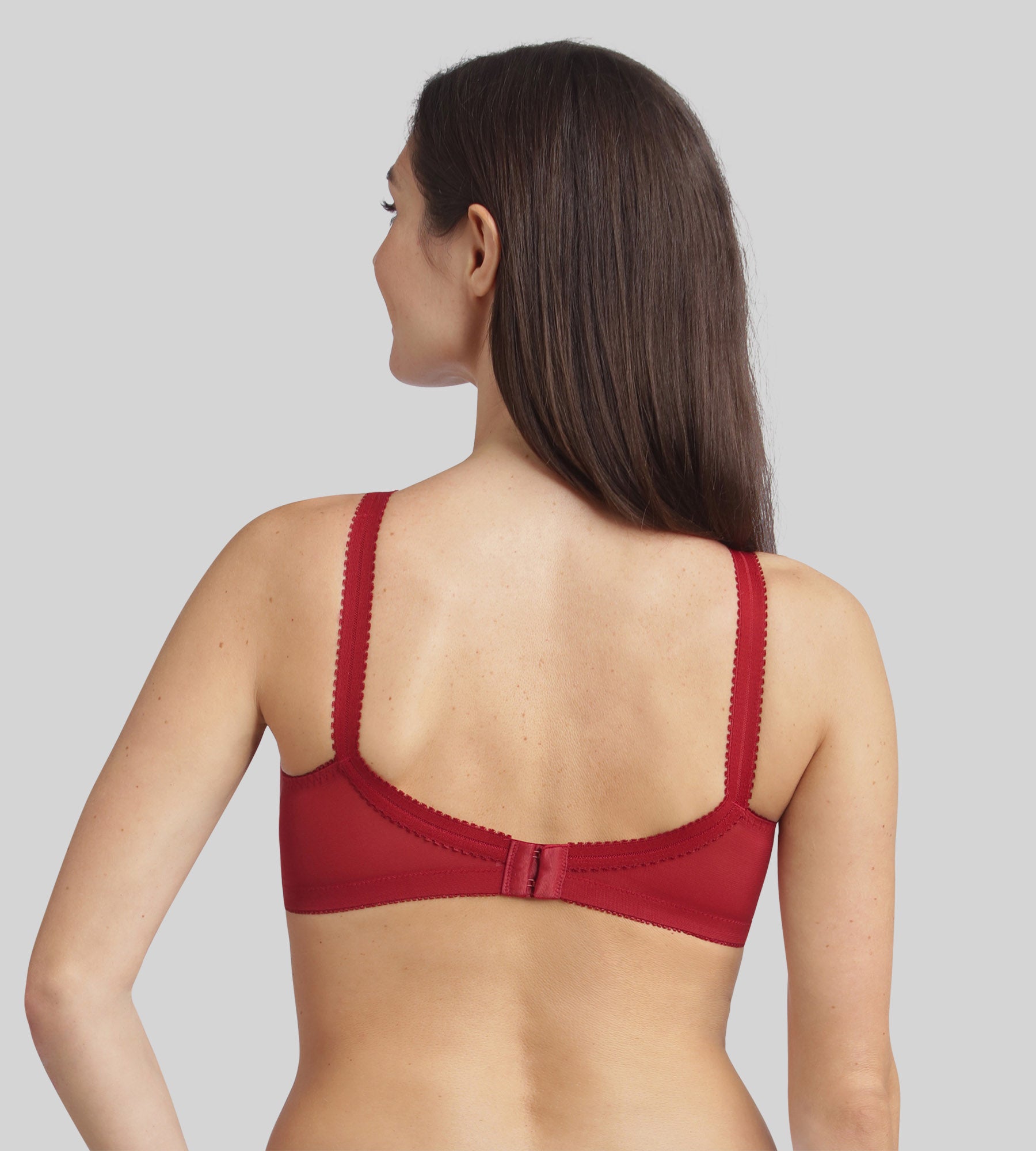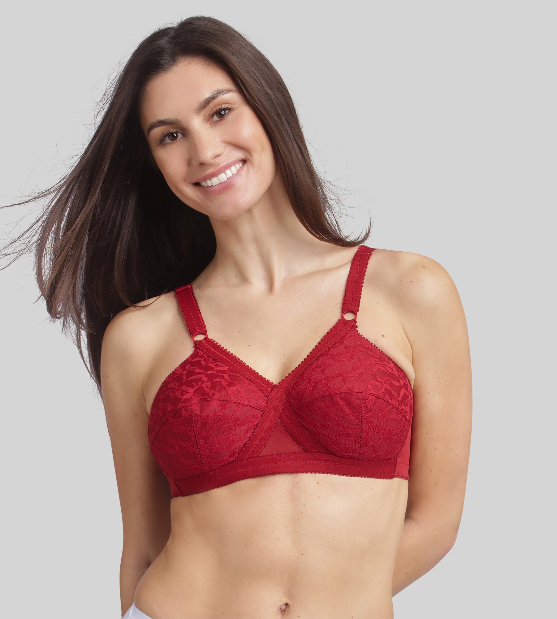 Il reggiseno a coppa Criss Cross 556 in velluto rosso conferisce un tocco di sensualità a questo modello iconico. Grazie alla sua emblematica struttura incrociata e all'assenza di ferretti, sostiene il seno offrendo una curvatura naturale e armoniosa. Il pizzo tono su tono avvolge delicatamente il busto, mentre le spalline larghe e il taglio a U sulla schiena garantiscono una vestibilità impeccabile, particolarmente indicata per le taglie forti. Questo rosso intenso ed elegante aggiunge un tocco di carattere alla tua lingerie, ideale per coniugare comfort e seduzione.