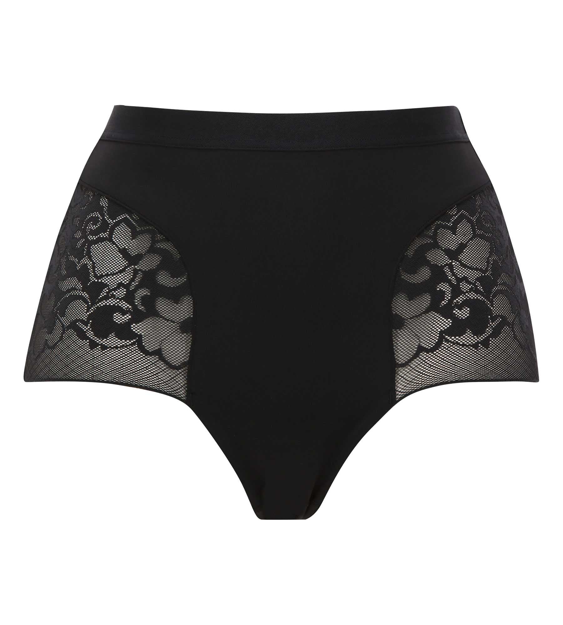 - Mutanda vita alta nera Inserti di tulle con ricami sui fianchi