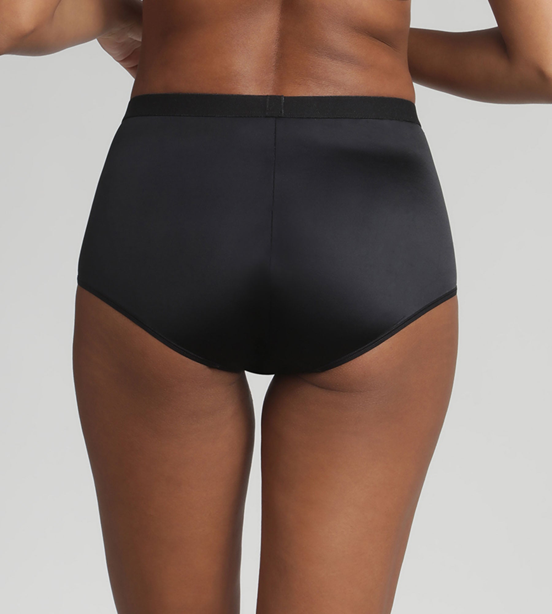 La mutanda vita alta nera Perfect Silhouette si rinnova questa stagione con un'inedita microfibra elasticizzata e molto comoda. Inserti in tulle trasparente sottolineano i fianchi per un look moderno e chic. Curve e glutei vengono modellati e ridefiniti alla perfezione. Un rinforzo invisibile assicura un effetto pancia piatta, per una silhouette ineccepibile sotto ogni tipo di abbigliamento. Da indossare tutto il giorno!
